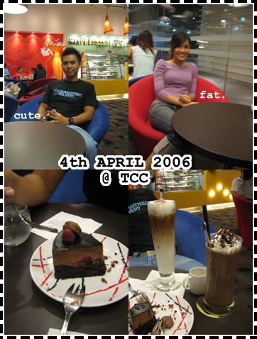 jacintha came over, waking me. printed stuffs for her. bitched. she left. then NAPPED. wait, did i nap? forgot totally. so watched Herbie fully loaded and cellular! he burned those shows for me. and CELLULAR simply rocks. its such a good show. i love it. rushed down for singing. sang because of you by kelly clarkson. met him and we had NO WAFFLES this week AGAIN. we ate KFC and walked to SMU campus and sat down. too many pretty girls in shorts. HAD TO LEAVE before my baby -_-. then had good dessert at TCC. and HOME sweet home.