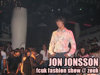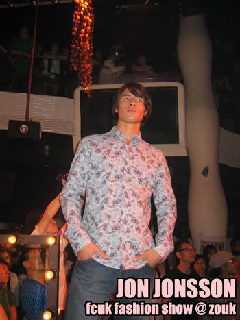 fcuk fashion show at zouk was alright. before the show, cabbed to west mall to have dinner w baby and then samuel and crys picked us up and off we went to zouk. met cindy, celene, candice and xinping there. gary, gavin and kenneth came too! its kenneth's first time clubbing! (: then chengyin came only later. pictures! and JON JONSSON WENT! damn hot. (: but sorry, not as hot as my baby. HAHAHAH.